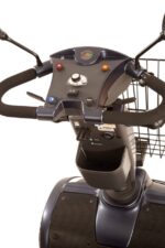 It features a delta-bar tiller with adjustment, a sliding swivel seat with headrest and padded arms as well as showerproof switches and a large basket making the Pioneer one of the most popular scooters on the market.